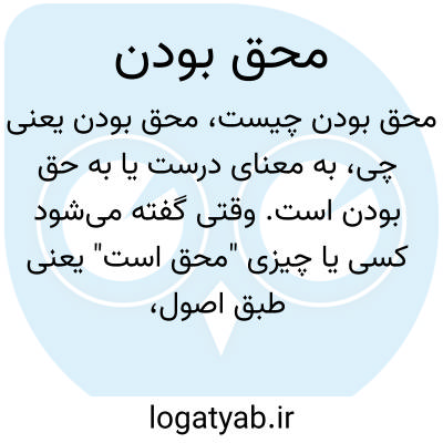 به معنای درست یا به حق بودن است. وقتی گفته می‌شود کسی یا چیزی "محق است" یعنی طبق اصول، قوانین، حقایق یا اخلاق، درست یا سزاوار است و ادعایش قابل قبول است.