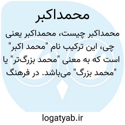 این ترکیب نام "محمد اکبر" است که به معنی "محمد بزرگتر" یا "محمد بزرگ" میباشد. در فرهنگ اسلامی، "اکبر" به معنای بزرگتر یا گرامیتر است و غالباً برای تمجید به کار میرود.