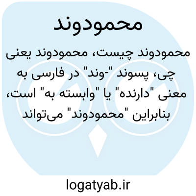 پسوند "-وند" در فارسی به معنی "دارنده" یا "وابسته به" است، بنابراین "محمودوند" میتواند به معنی "وابسته یا منتسب به محمود" باشد، گاهی به عنوان نام خانوادگی یا نسبت قبیلهای کاربرد دارد.