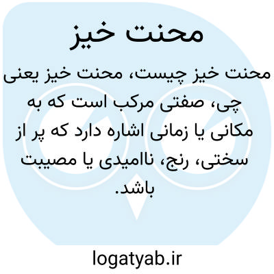 صفتی مرکب است که به مکانی یا زمانی اشاره دارد که پر از سختی، رنج، ناامیدی یا مصیبت باشد. "محنت" به معنی رنج و سختی است و "خیز" به معنای برآمده یا پدید آمده، پس "محنت خیز" یعنی مکانی یا زمانه‌ای که محنت بر آن غالب است.