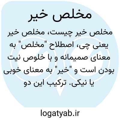 اصطلاح "مخلص" به معنای صمیمانه و با خلوص نیت بودن است و "خیر" به معنای خوبی یا نیکی. ترکیب این دو کلمه میتواند به معنای کسی باشد که با نیت خیر و صداقت کامل عمل میکند یا فردی که برای انجام کارهای خیر و نیکو با تمام وجود تلاش میکند.