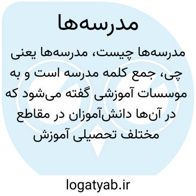 جمع کلمه مدرسه است و به موسسات آموزشی گفته میشود که در آنها دانشآموزان در مقاطع مختلف تحصیلی آموزش میبینند. مدرسهها نقش اساسی در تربیت، آموزش و پرورش افراد جامعه دارند.