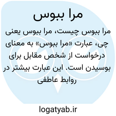 عبارت «مرا ببوس» به معنای درخواست از شخص مقابل برای بوسیدن است. این عبارت بیشتر در روابط عاطفی و عاشقانه استفاده میشود و دلالت بر ابراز عشق، محبت و نزدیکی روحی دارد.