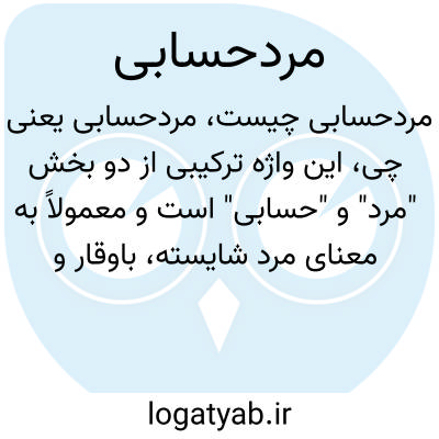 این واژه ترکیبی از دو بخش "مرد" و "حسابی" است و معمولاً به معنای مرد شایسته، باوقار و دارای اخلاق خوب استفاده میشود. همچنین به کسی گفته میشود که در زندگی و رفتار خود منظم و درستکار است.