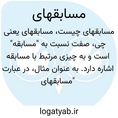 صفت نسبت به "مسابقه" است و به چیزی مرتبط با مسابقه اشاره دارد. به عنوان مثال، در عبارت "مسابقهای فوتبال" منظور مسابقه‌ مرتبط یا وابسته به مسابقه فوتبال است. این صفت می‌تواند برای توصیف فعالیت‌ها، برنامه‌ها یا رویدادهایی به کار رود که ماهیت رقابتی داشته یا در قالب مسابقه برگزار می‌شوند.