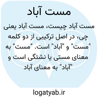 در اصل ترکیبی از دو کلمه "مست" و "آباد" است. "مست" به معنای مستی یا نشئگی است و "آباد" به معنای آباد شده، پررونق یا محل سکونت. این ترکیب به خودی خود معنا ندارد مگر در اسامی خاص جغرافیایی مانند نام یک شهر یا روستا؛ مثلاً نام یک روستا یا محله می‌تواند "مست‌آباد" باشد، اما در معنای عمومی کلمه‌ای ترکیب نشده است.