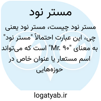 این عبارت احتمالاً "مستر نود" به معنای "Mr. 90" است که می‌تواند اسم مستعار یا عنوان خاص در حوزه‌هایی مانند بازی، فناوری یا فرهنگ عامه باشد اما در زبان فارسی معنی مشخصی ندارد و عبارتی معمول یا رایج نیست.