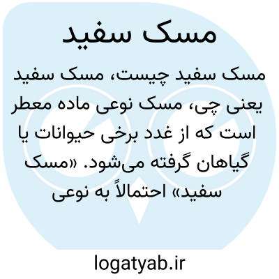 مسک نوعی ماده معطر است که از غدد برخی حیوانات یا گیاهان گرفته میشود. «مسک سفید» احتمالاً به نوعی عطری با رایحهای مخصوص و ملایم اشاره دارد که در عطرسازی کاربرد دارد و رنگ آن روشن یا سفید است.