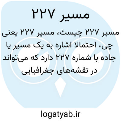 احتمالا اشاره به یک مسیر یا جاده با شماره ۲۲۷ دارد که می‌تواند در نقشه‌های جغرافیایی یا مسیرهای مشخص جاده‌ای به کار رود. بدون اطلاعات بیشتر، معنای خاص یا ویژگی‌های این مسیر مشخص نیست.