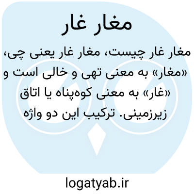 «مغار» به معنی تهی و خالی است و «غار» به معنی کوه‌پناه یا اتاق زیرزمینی. ترکیب این دو واژه ممکن است اشاره به مکانی خالی در غار داشته باشد، اما در زبان روزمره ترکیب مشخص و معنی‌داری نیست.