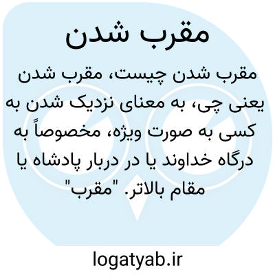 به معنای نزدیک شدن به کسی به صورت ویژه، مخصوصاً به درگاه خداوند یا در دربار پادشاه یا مقام بالاتر. "مقرب" کسی است که به نزدیکی و جایگاه ویژه دست یافته باشد. بنابراین "مقرب شدن" یعنی کسب جایگاه نزدیک و ویژه از نظر ارجمندی یا احترام.