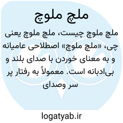 «ملچ ملوچ» اصطلاحی عامیانه و به معنای خوردن با صدای بلند و بیادبانه است. معمولاً به رفتار پر سر وصدای فرد هنگام خوردن غذا اشاره دارد و مفهوم منفی یا تمسخرآمیز دارد.