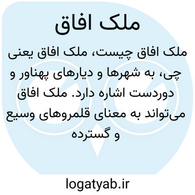 به شهرها و دیارهای پهناور و دوردست اشاره دارد. ملک افاق میتواند به معنای قلمروهای وسیع و گسترده یا دنیای پهناور خارج از منطقه کوچکتر باشد.
