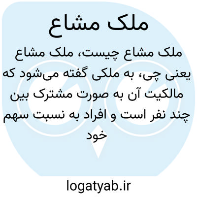 به ملکی گفته می‌شود که مالکیت آن به صورت مشترک بین چند نفر است و افراد به نسبت سهم خود در آن حق دارند. در ملک مشاع تقسیم فیزیکی ممکن است انجام نشده باشد.