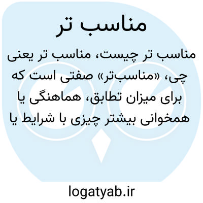 «مناسب‌تر» صفتی است که برای میزان تطابق، هماهنگی یا همخوانی بیشتر چیزی با شرایط یا نیازها به کار می‌رود. یعنی «بیشتر مناسب»، «بهتر هماهنگ» یا «بهینه‌تر». در گفتگو و نوشتار برای انتخاب بهتر یا ترجیح، کاربرد دارد.