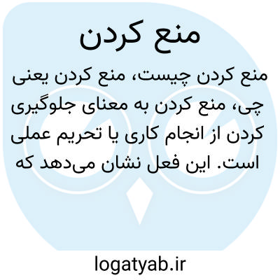 منع کردن به معنای جلوگیری کردن از انجام کاری یا تحریم عملی است. این فعل نشان میدهد که فرد یا نهادی مانع اجرای عملی شده است یا اجازه نمیدهد کاری صورت گیرد.