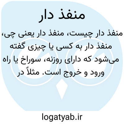 منفذ دار به کسی یا چیزی گفته میشود که دارای روزنه، سوراخ یا راه ورود و خروج است. مثلاً در ساختارهای فیزیکی، منفذ دار بودن امکان عبور هوا، آب یا نور را فراهم میکند.