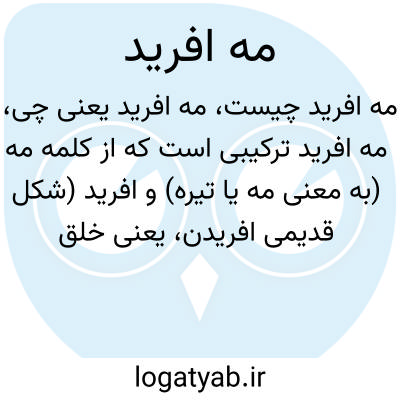 مه افرید ترکیبی است که از کلمه مه (به معنی مه یا تیره) و افرید (شکل قدیمی افریدن، یعنی خلق کردن) ساخته شده است. به صورت یک نام خاص یا لقب می‌تواند به معنای "خلق شده از مه" یا "آفریده شده در مه" باشد، اما در زبان فارسی به شکل رایج استفاده نمی‌شود.