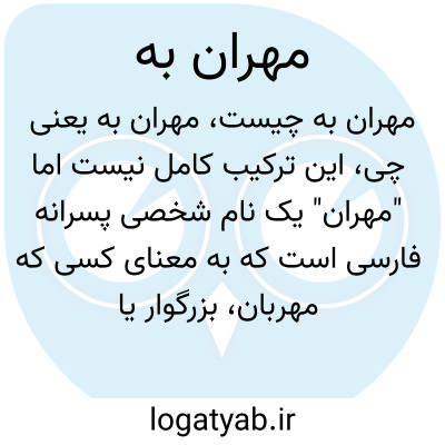 این ترکیب کامل نیست اما "مهران" یک نام شخصی پسرانه فارسی است که به معنای کسی که مهربان، بزرگوار یا دوست‌داشتنی است. "به" به تنهایی در اینجا معنی مستقلی ندارد و وابسته به جمله است.