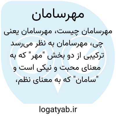 مهرسامان به نظر می‌رسد ترکیبی از دو بخش "مهر" که به معنای محبت و نیکی است و "سامان" که به معنای نظم، ترتیب، یا وضعیت مناسب می‌باشد. اسم مهرسامان می‌تواند به معنای نظم‌دهنده به محبت یا کسی که نظم را با مهربانی همراه می‌کند باشد.