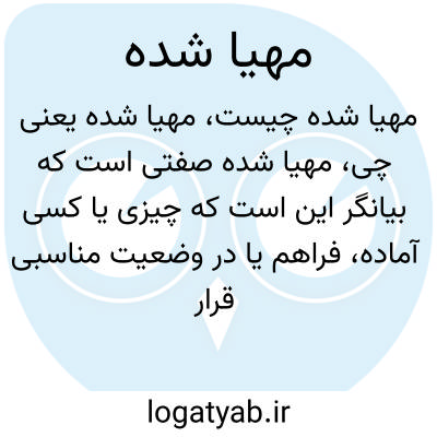 مهیا شده صفتی است که بیانگر این است که چیزی یا کسی آماده، فراهم‌ یا در وضعیت مناسبی قرار گرفته است تا عملی صورت گیرد یا یک رخداد اتفاق بیفتد.