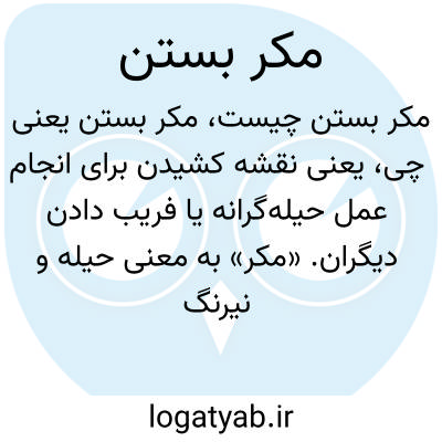 یعنی نقشه کشیدن برای انجام عمل حیلهگرانه یا فریب دادن دیگران. «مکر» به معنی حیله و نیرنگ است و «بستن مکر» یعنی طرحریزی نقشهای محرمانه برای رسیدن به هدفی نامشروع یا مخفیانه.