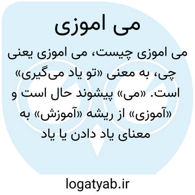 به معنی «تو یاد می‌گیری» است. «می» پیشوند حال است و «آموزی» از ریشه «آموزش» به معنای یاد دادن یا یاد گرفتن. بنابراین معمولا به فرآیند یادگیری یا تعلیم اشاره دارد.