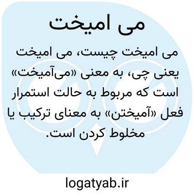 به معنی «میآمیخت» است که مربوط به حالت استمرار فعل «آمیختن» به معنای ترکیب یا مخلوط کردن است. وقتی گفته میشود «میآمیخت»، یعنی فعل ترکیب کردن در زمان حال یا گذشته استمراری بیان شده است.