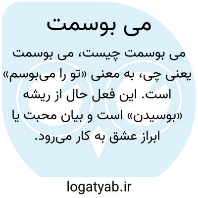 به معنی «تو را میبوسم» است. این فعل حال از ریشه «بوسیدن» است و بیان محبت یا ابراز عشق به کار میرود.