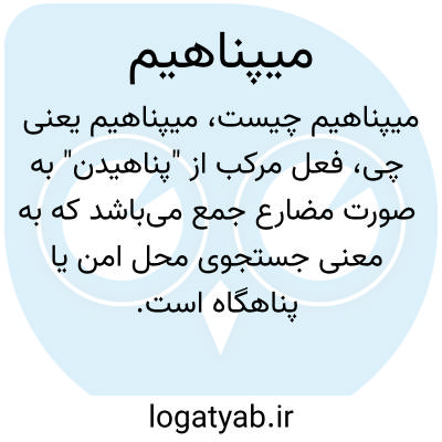 فعل مرکب از "پناهیدن" به صورت مضارع جمع میباشد که به معنی جستجوی محل امن یا پناهگاه است. «میپناهیم» یعنی ما به جایی یا کسی برای حفظ امنیت یا فرار از خطر پناه میبریم.