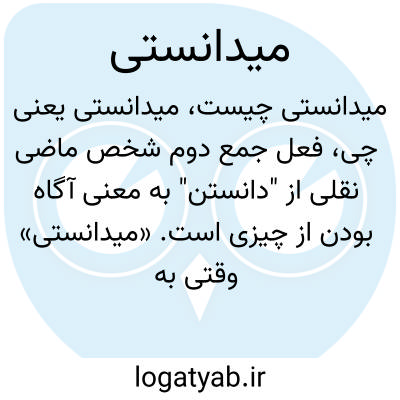 فعل جمع دوم شخص ماضی نقلی از "دانستن" به معنی آگاه بودن از چیزی است. «میدانستی» وقتی به صورت سوال و خبری به کار میرود، به معنای "آیا شما اطلاع داشتید؟" یا "تو میدانستی" است.