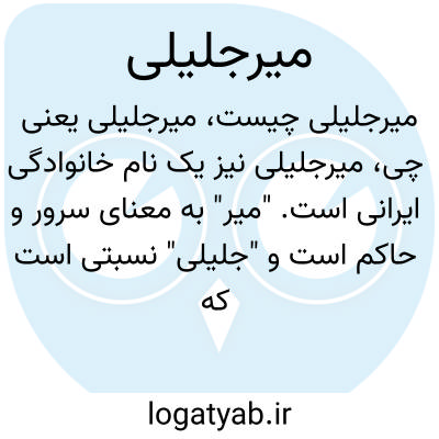 میرجلیلی نیز یک نام خانوادگی ایرانی است. "میر" به معنای سرور و حاکم است و "جلیلی" نسبتی است که به نام جلیل یا شخصی با این عنوان اشاره دارد. این نام معمولاً برای اشاره به خانواده‌ای به کار می‌رود.