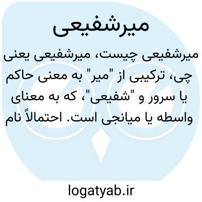 ترکیبی از "میر" به معنی حاکم یا سرور و "شفیعی"، که به معنای واسطه یا میانجی است. احتمالاً نام خانوادگی است و به خانواده‌ای اشاره دارد که به عنوان واسطه‌گران یا رهبران شناخته شده‌اند.