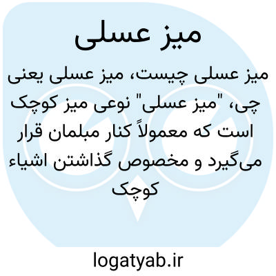 "میز عسلی" نوعی میز کوچک است که معمولاً کنار مبلمان قرار میگیرد و مخصوص گذاشتن اشیاء کوچک مانند لیوان چای یا کتاب است. نام آن احتمالاً به دلیل رنگ یا شکل ظاهری آن انتخاب شده است.