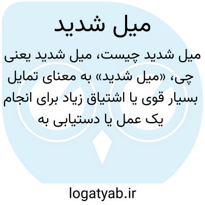 «میل شدید» به معنای تمایل بسیار قوی یا اشتیاق زیاد برای انجام یک عمل یا دستیابی به هدفی است. زمانی استفاده می‌شود که تمایل یا علاقه فرد به حد بالایی رسیده باشد و انگیزه‌اش قوی باشد.