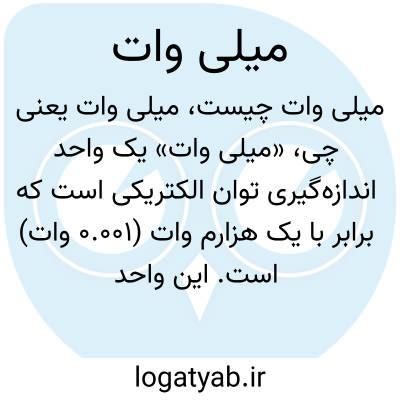 «میلی وات» یک واحد اندازه‌گیری توان الکتریکی است که برابر با یک هزارم وات (0.001 وات) است. این واحد اغلب برای اندازه‌گیری مصرف یا تولید توان در دستگاه‌های کوچک یا مقیاس‌های کم به کار می‌رود.