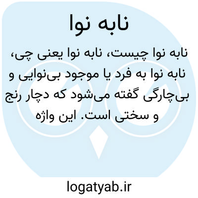 نابه نوا به فرد یا موجود بینوایی و بیچارگی گفته میشود که دچار رنج و سختی است. این واژه هم معنای ترحمآمیز دارد و هم بار احساسی و همدلی به همراه دارد.