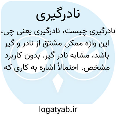 این واژه ممکن مشتق از نادر و گیر باشد، مشابه نادر گیر. بدون کاربرد مشخص. احتمالاً اشاره به کاری که به صورت نادر و کم‌تکرار انجام می‌شود یا رخدادهای نادر است. کاربرد آن در زبان معیار رایج نیست.