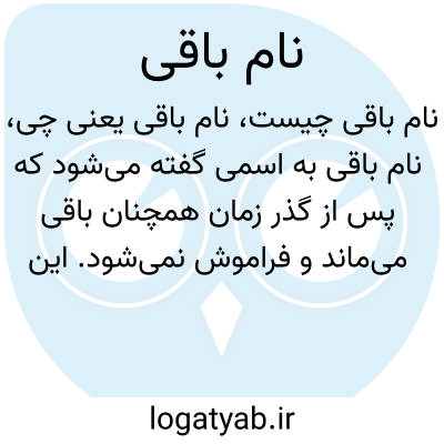 نام باقی به اسمی گفته می‌شود که پس از گذر زمان همچنان باقی می‌ماند و فراموش نمی‌شود. این عبارت معمولاً برای افراد مشهور، بعلاوه آثار و دستاوردهایی که به یادگار می‌مانند، به کار می‌رود. نام باقی نماد شهرت، اعتبار و یادآوری همیشگی است.