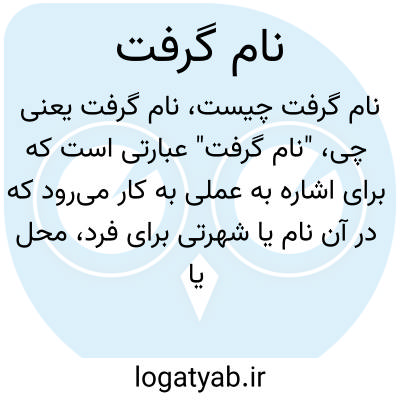 "نام گرفت" عبارتی است که برای اشاره به عملی به کار می‌رود که در آن نام یا شهرتی برای فرد، محل یا چیز خاصی حاصل شده است. این عبارت معمولاً در معنی مشهور شدن یا شناخته شدن به کار می‌رود.