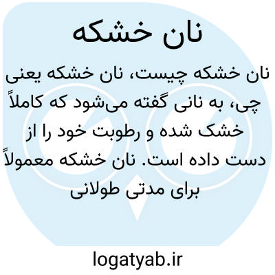 به نانی گفته میشود که کاملاً خشک شده و رطوبت خود را از دست داده است. نان خشکه معمولاً برای مدتی طولانی نگهداری میشود و ممکن است به صورت نان خشک تهیه شود که در برخی غذاها مانند سوپها یا خوراکها استفاده میشود.