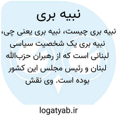 نبیه بری یک شخصیت سیاسی لبنانی است که از رهبران حزب‌الله لبنان و رئیس مجلس این کشور بوده است. وی نقش مهمی در سیاست لبنان و منطقه دارد و نام او بیشتر به عنوان یک اسم خاص شناخته می‌شود.