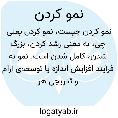 به معنی رشد کردن، بزرگ شدن، کامل شدن است. نمو به فرآیند افزایش اندازه یا توسعه‌ی آرام و تدریجی هر موجود زنده یا پدیده‌ای گفته می‌شود. مثلا در گیاهان نمو اشاره به رشد و بارور شدن آن‌ها دارد.
