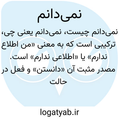 ترکیبی است که به معنی «من اطلاع ندارم» یا «اطلاعی ندارم» است. مصدر مثبت آن «دانستن» و فعل در حالت منفی و به صورت «نمیدانم» به کار میرود.