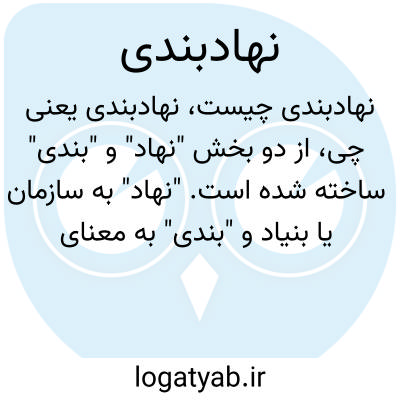 از دو بخش "نهاد" و "بندی" ساخته شده است. "نهاد" به سازمان یا بنیاد و "بندی" به معنای دسته‌بندی یا تنظیم است. در مجموع، "نهادبندی" به مفهوم سازمان‌دهی، طبقه‌بندی و ساختاربندی سازمان‌ها یا سیستم‌ها است.