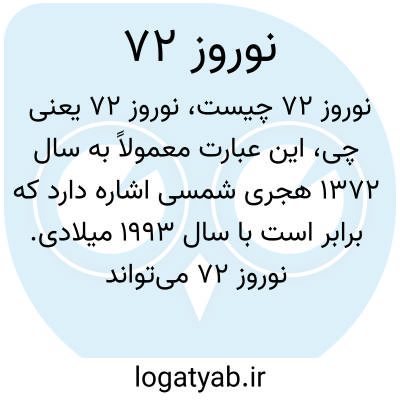 این عبارت معمولاً به سال ۱۳۷۲ هجری شمسی اشاره دارد که برابر است با سال ۱۹۹۳ میلادی. نوروز ۷۲ می‌تواند به جشن نوروز در آن سال خاص اشاره داشته باشد که یکی از مهم‌ترین جشن‌های ایرانیان و برخی دیگر از اقوام منطقه است و آغاز سال نو و فصل بهار را اعلام می‌کند.