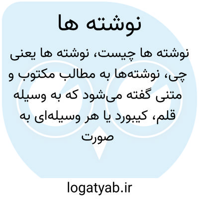 نوشته‌ها به مطالب مکتوب و متنی گفته می‌شود که به وسیله قلم، کیبورد یا هر وسیله‌ای به صورت نوشتاری ضبط شده‌اند. این نوشته‌ها می‌توانند شامل متون ادبی، علمی، خبری، آموزشی یا هر گونه ثبت اطلاعات باشند که برای انتقال پیام، نگهداری دانش و ارتباط بین افراد کاربرد دارند.