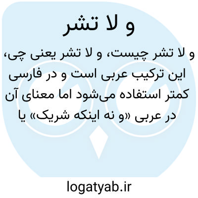 این ترکیب عربی است و در فارسی کمتر استفاده میشود اما معنای آن در عربی «و نه اینکه شریک» یا «و نه مالک» است. در فارسی معمولاً به کار نمیرود.