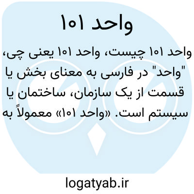 "واحد" در فارسی به معنای بخش یا قسمت از یک سازمان، ساختمان یا سیستم است. «واحد ۱۰۱» معمولاً به شماره‌گذاری یک بخش یا اتاق در ساختمان اشاره دارد، مثلاً آپارتمان شماره ۱۰۱ یا بخش ۱۰۱ در یک سازمان. معنی مشخص‌تر بستگی به زمینه دارد.