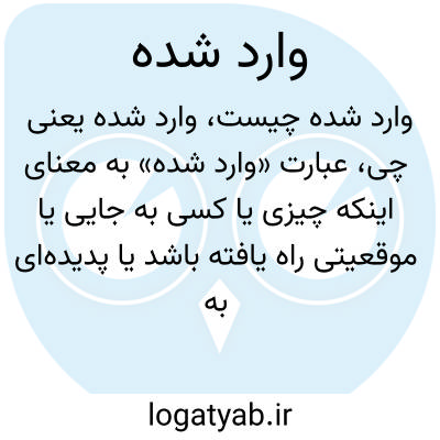 عبارت «وارد شده» به معنای اینکه چیزی یا کسی به جایی یا موقعیتی راه یافته باشد یا پدیده‌ای به وقوع پیوسته باشد. برای مثال، کالاهای وارد شده به یک کشور کالاهایی‌اند که از خارج وارد شده‌اند یا فردی که وارد یک مکان شده است.